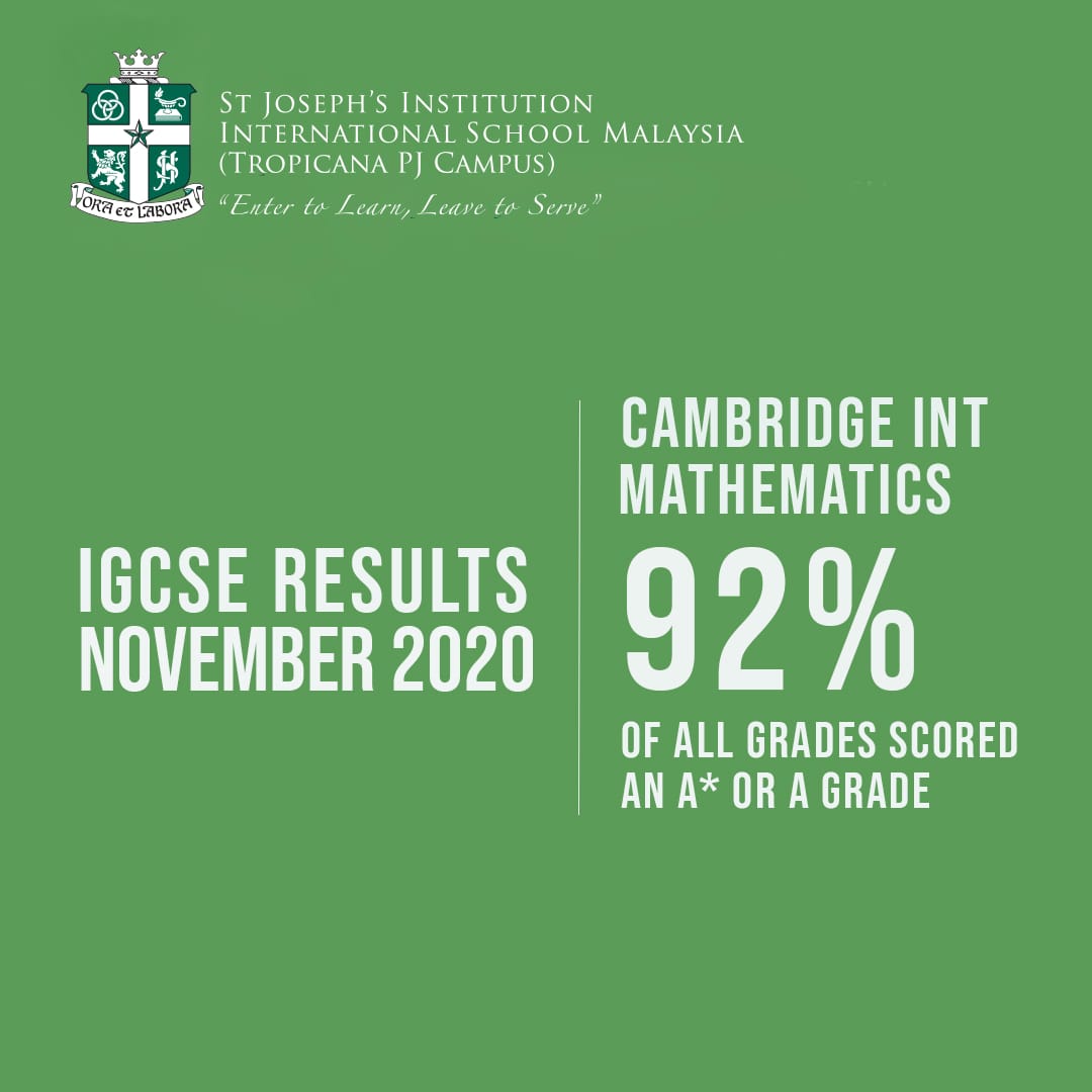 We are proud to announce another set of outstanding results for Cambridge Int Mathematics – IGCSE November 2020. 92% of all grades scored either an A* or A grade. These results represent an excellent performance by the students. The exams were taken under extraordinary circumstances during the Conditional Movement Control Order (CMCO), but the students were still able to focus on their revision and preparation. We look forward to supporting them in the coming months as they prepare for the Cambridge Additional Mathematics paper in May.