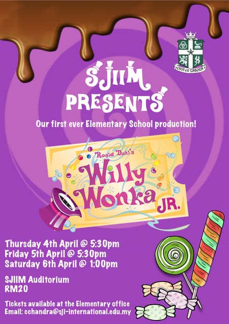 SJIIM’s Elementary School will be presenting its first ever production titled Willy Wonka Jr. This wonderful show will run from 4 – 6 April 2019 at the school auditorium. For more information and ticket purchase, kindly contact Ms. Camelina at cchandra@sji-international.