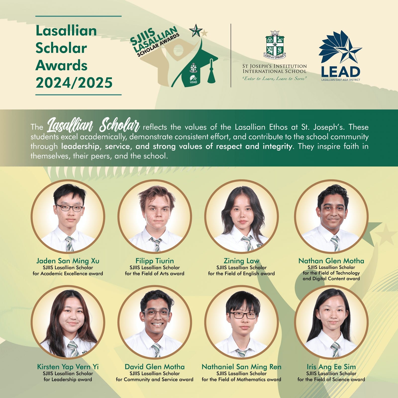 More than just high achievers, Lasallian Scholars at SJIIS are role models who embody the core Lasallian values. Their dedication, resilience and commitment to excellence are the true strength of our school, inspiring those around them to strive for both personal and collective success.