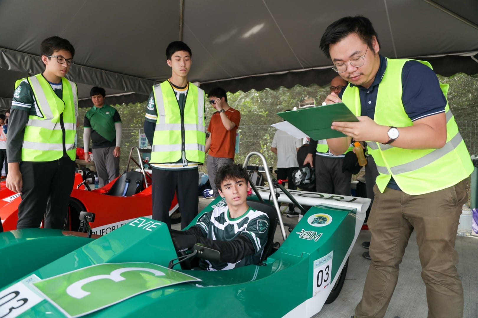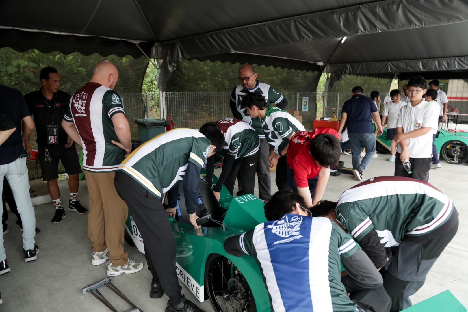 Our team from St. Joseph’s Institution International School, known as “Sanctorum Racing,” included Marcus, Jun Hao Ooi, Hayoung Kim, Kayden, Ka-Leong Chow, William Ariff Pym, Liam Conor Kok Callaham, Koh Kian Tin, Cheow Jit Kai, and Yu-Han Wong. They were accompanied by parent volunteer Mr Andrew Chow, as well as teachers Mr James Bedding and Mr Gavin King, who supported the students throughout the day.