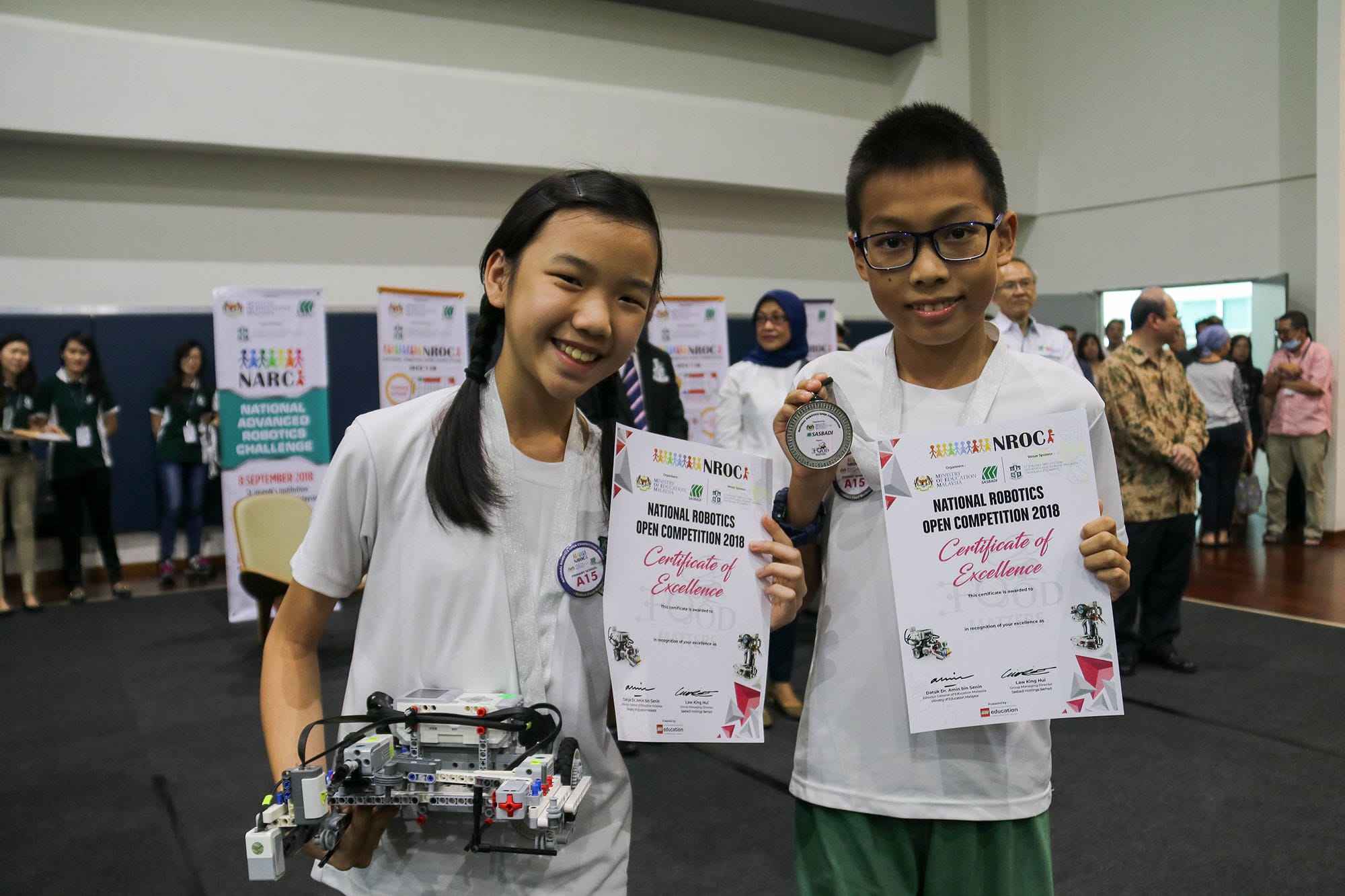 There were a total of 73 teams this year for both competitions and the SJIIM multi-purpose sports hall was filled with excited participants on an early morning of a public holiday . The competition theme for this year’s NARC was “Tetrastack”, where the challenge required the participants to build a robot that can score as many points as possible in a robotic version of the Tetris® game. Meanwhile, the theme for NROC was “Food Matters”, which focused on the way food is grown, shared and consumed; and how robotics technology can be used to help grow more and better food as well as reduce food waste at the same time. The champions of the different levels will be getting the opportunity to represent Malaysia at the 2018 World Robot Olympiad (WRO) scheduled to be held in Chiang Mai, Thailand from 16 – 18 November 2018. SJIIM was represented in the Elementary School category by Mike Liu and Gan Ru Ping, who emerged first runner-up out of the 17 participating teams.