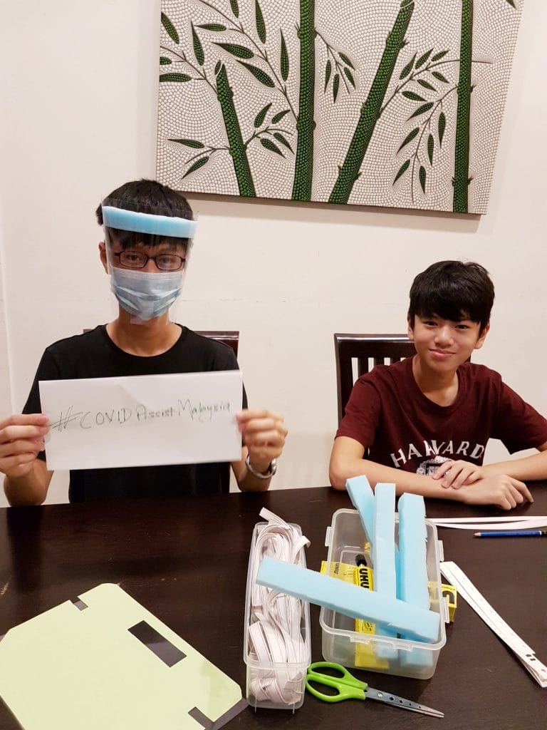 SJIIM student Calvin Foo with one of the face shields he made for COVID Assist Malaysia