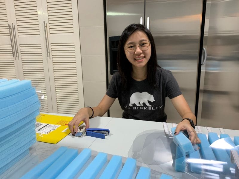 Co-founder of COVID Assist Malaysia and SJIIM student, Sandra Ong hard at work constructing the face shields needed for the frontliners.