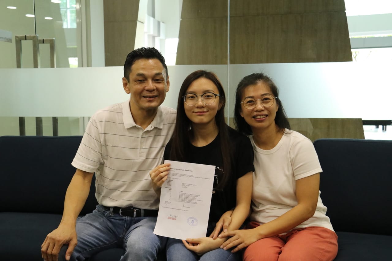 Top SJIIM IBDP Scorer Chong Ying Xuan with her proud parents