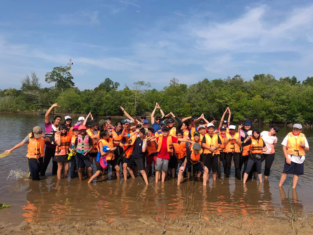 Our Year 8 students having a great time during the seedling mission at the mangrove area